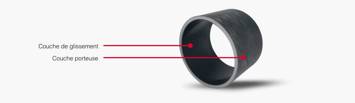 La couche intérieure est constituée d'un tissu spécial enrichi de lubrifiants solides. Les paliers sont ainsi autolubrifiants et ne nécessitent aucun entretien. Ils ont également un coefficient de frottement particulièrement faible, ce qui garantit un mouvement régulier et une durée de vie plus longue.